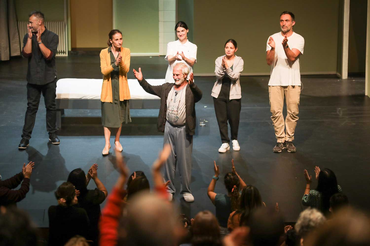 Puedo quedar corto en hablar de la actuación del protagonista, Andrés, interpretado magistralmente por Héctor Noguera, que una vez más nos da muestras de su gran versatilidad —y es un placer tenerlo con 84 años sobre un escenario— aquí lo vemos interiorizarse y asumir un personaje sólido, enfermo, divertido y que todavía no llega a esos grados de agresividad que registra esta demencia en su grado más fuerte.