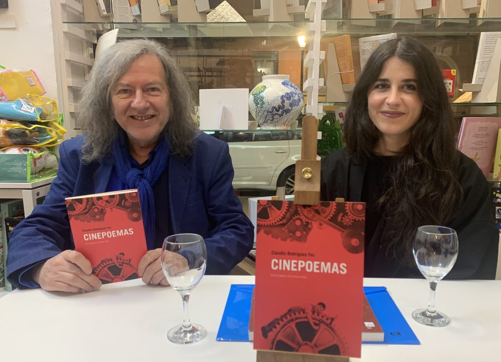 Imagen destacada: Claudio Rodríguez Fer y Cristina Fiaño presentando Cinepoemas en Madrid (2026).