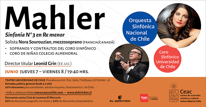 El concierto del próximo 7 y 8 de junio en el Teatro Universidad de Chile, marcará un hito, ello al traer de regreso una obra esencial del repertorio postromántico. Se trata de la Sinfonía N°3 de Gustav Mahler, una composición de gran exigencia, que considera cerca de un centenar de músicos en escena, además de un coro femenino, un coro infantil y una solista.