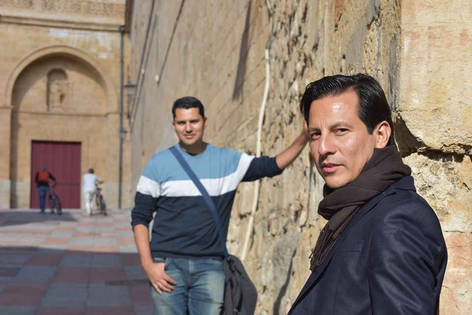 Imagen destacada: En primer plano el poeta Nilson Santiago, en la ciudad española de Salamanca.